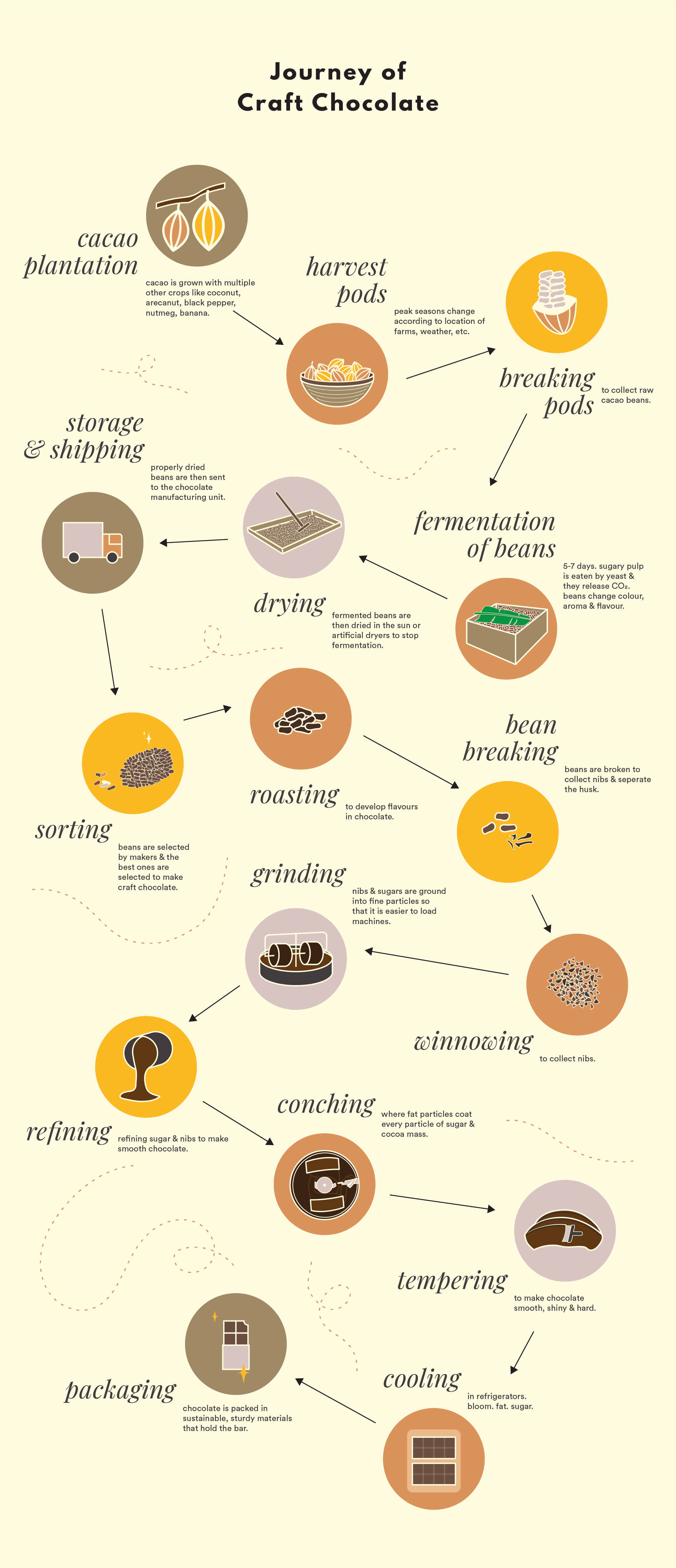 Craft Chocolate is made mostly with just two ingredients, cacao beans and sugar putting the emphasis on the natural flavours of the cacao.