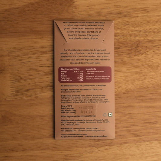 Anuttama 70% Dark Chocolate with Dates