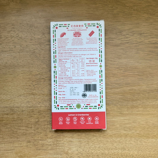 CARRA Lemon & Cranberries in Vegan White Chocolate