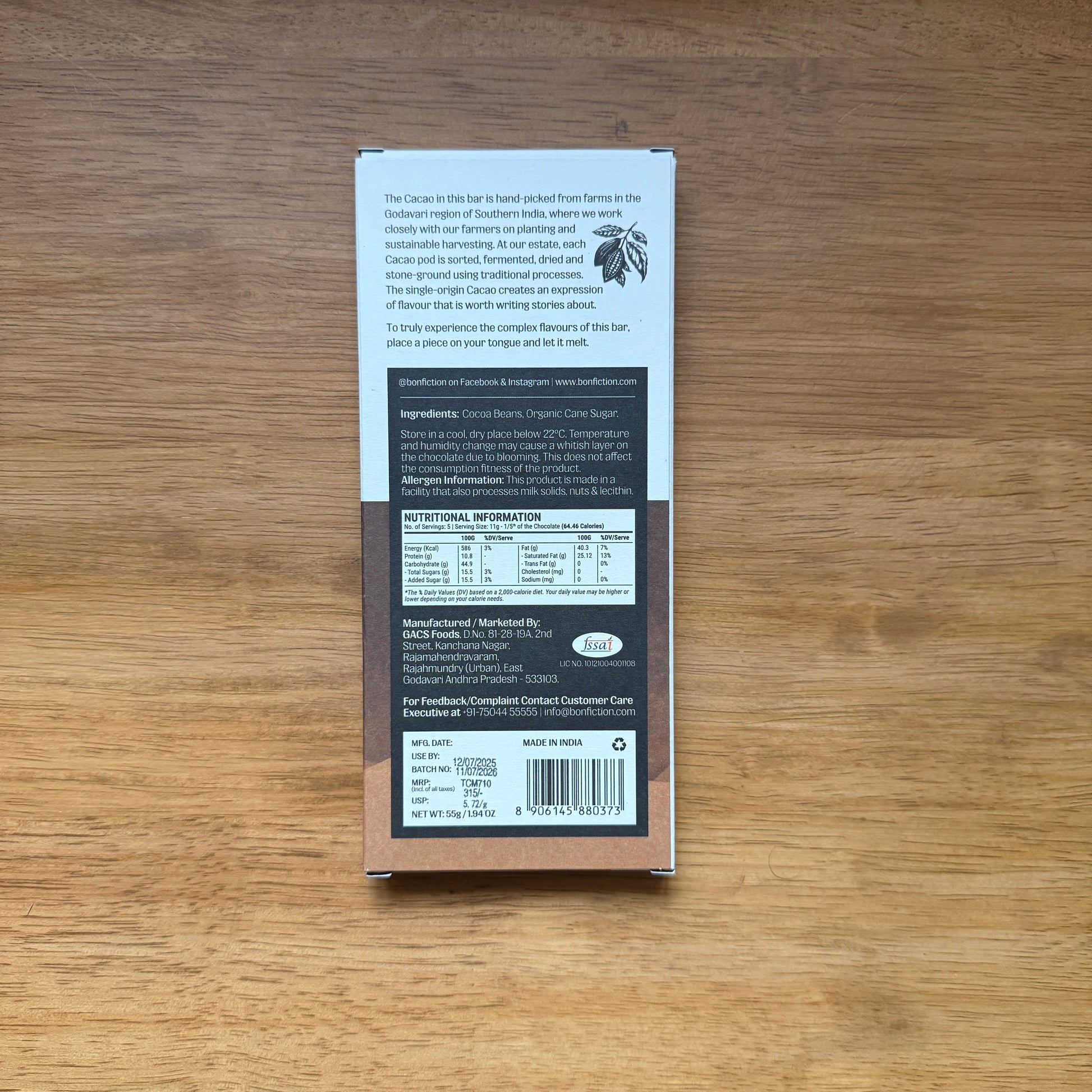 INGREDIENTS: CACAO NIBS, ORGANIC CANE SUGAR